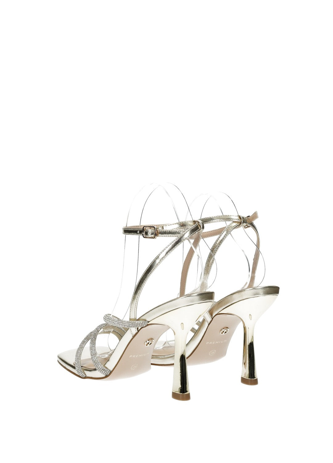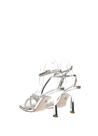Sandali effetto pelle metallizzati con tacco di 9.5 cm e listini strass.