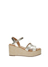 Sandali effetto pelle metallizzati con zeppa di 8 cm.