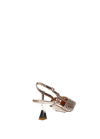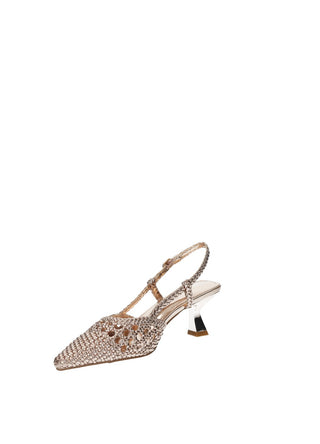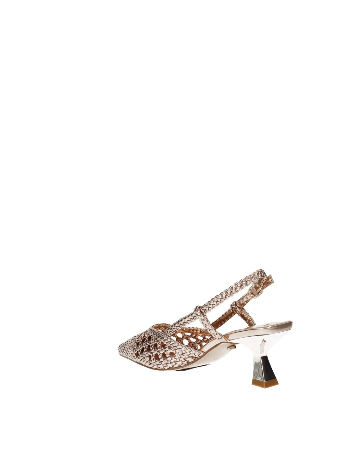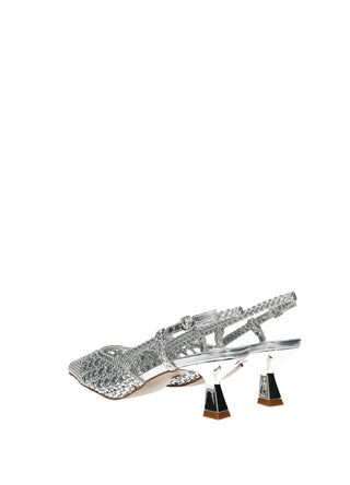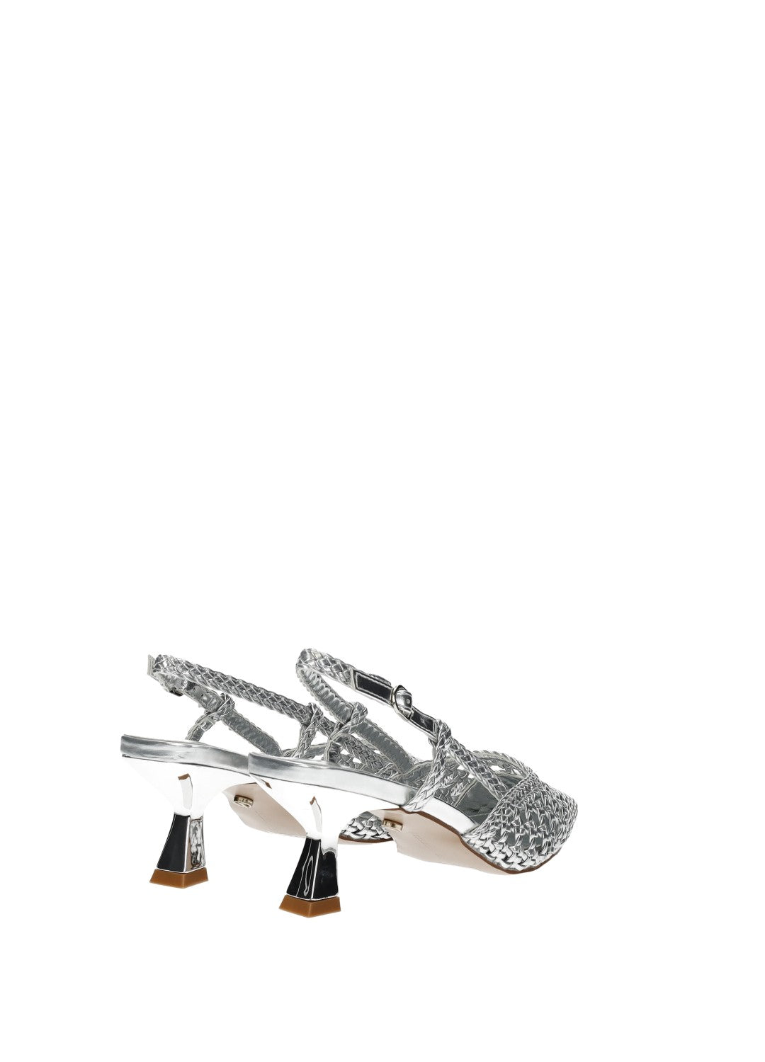 Décolleté intrecciate in ecopelle con tacco di 6 cm. effetto metallizzato .