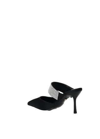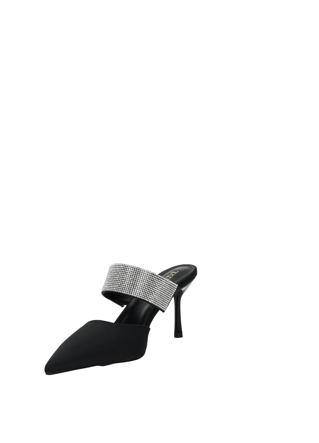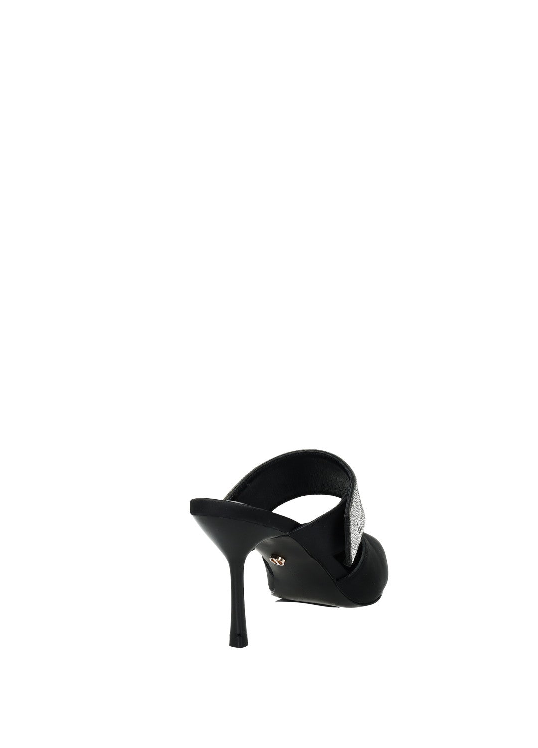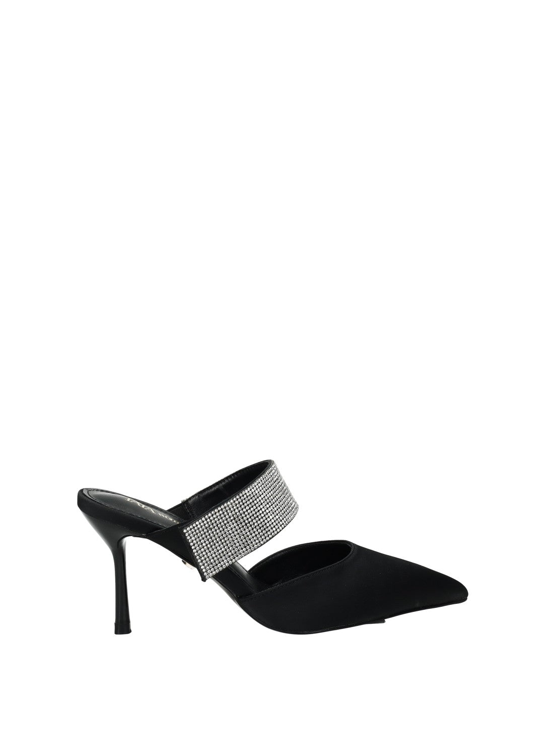 Sabot in raso con tacco di 8 cm e fascia gioiello in strass.