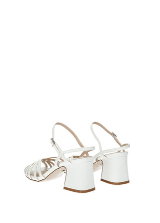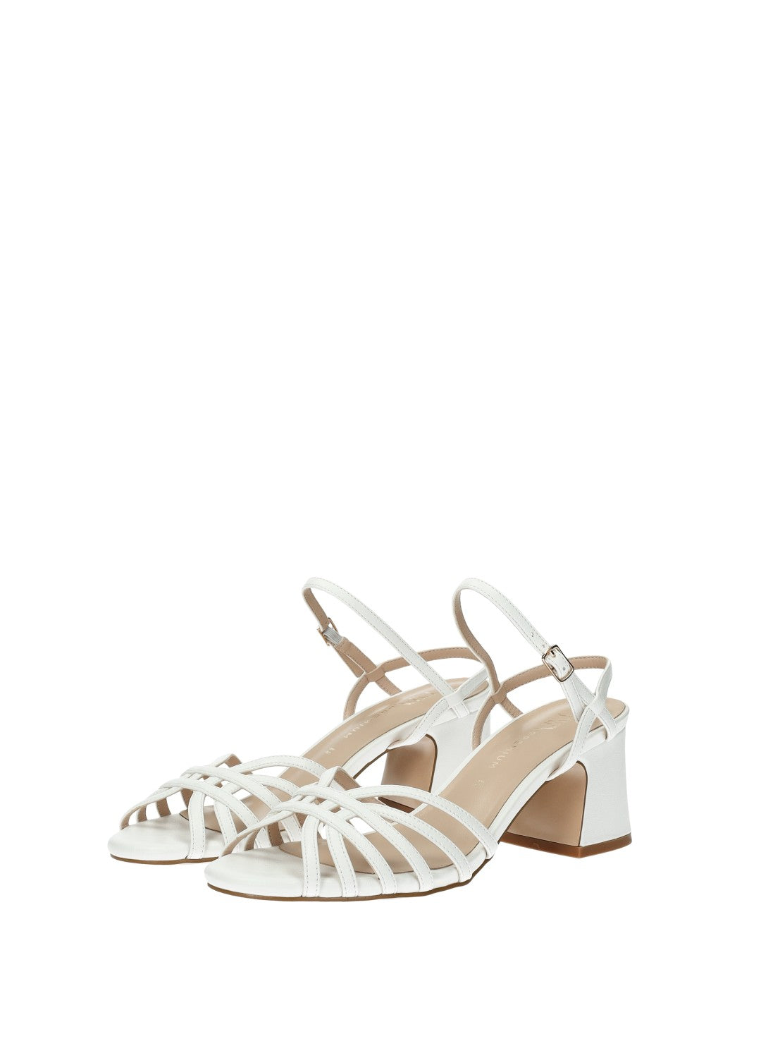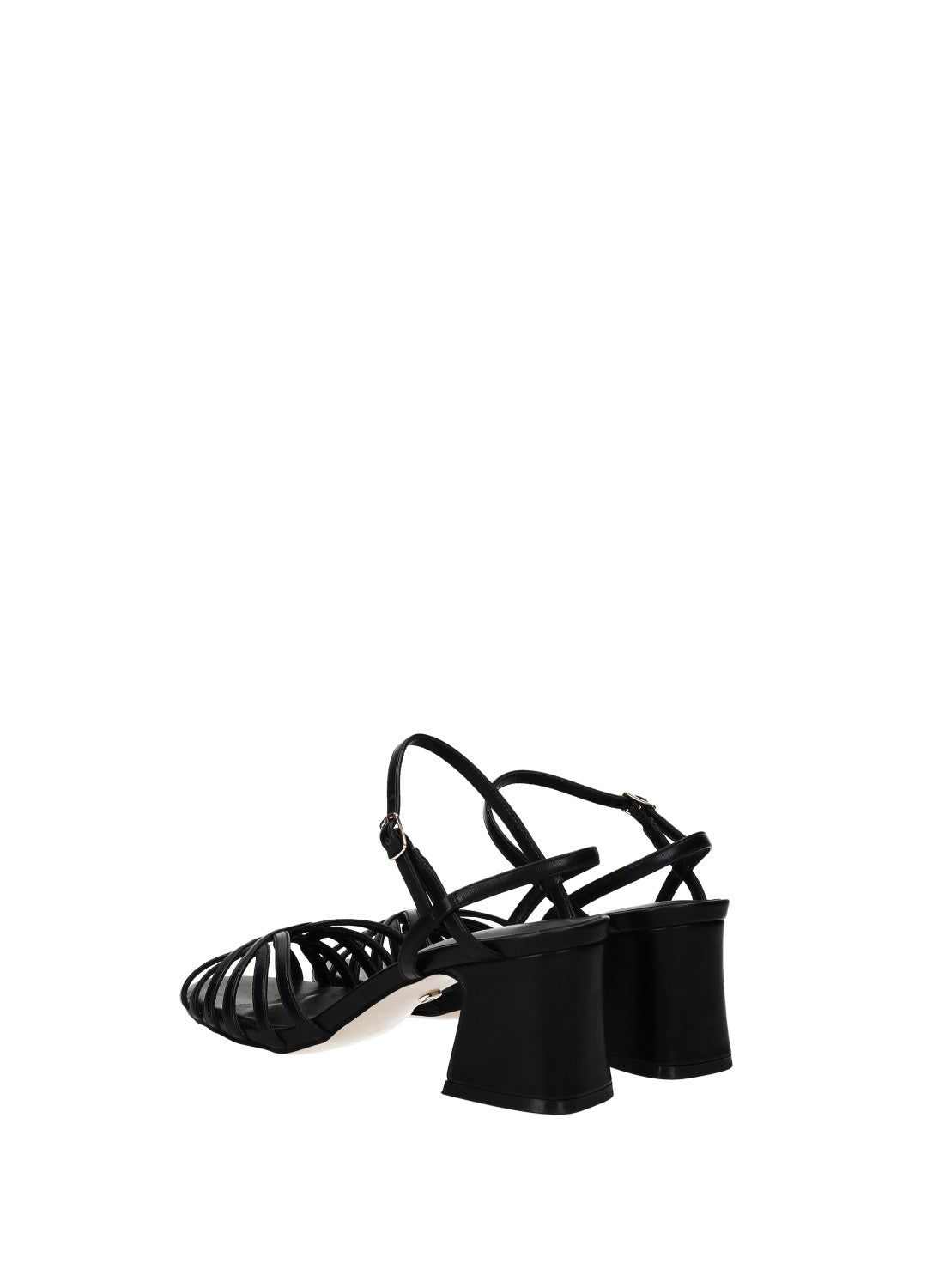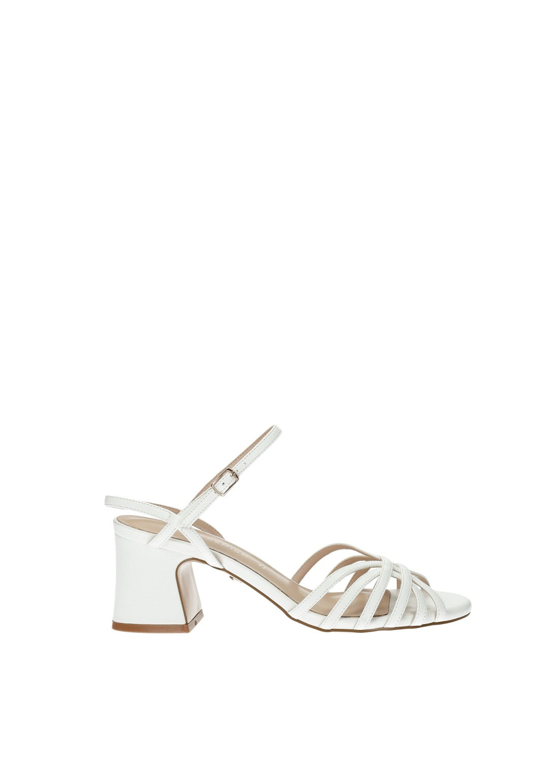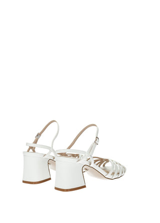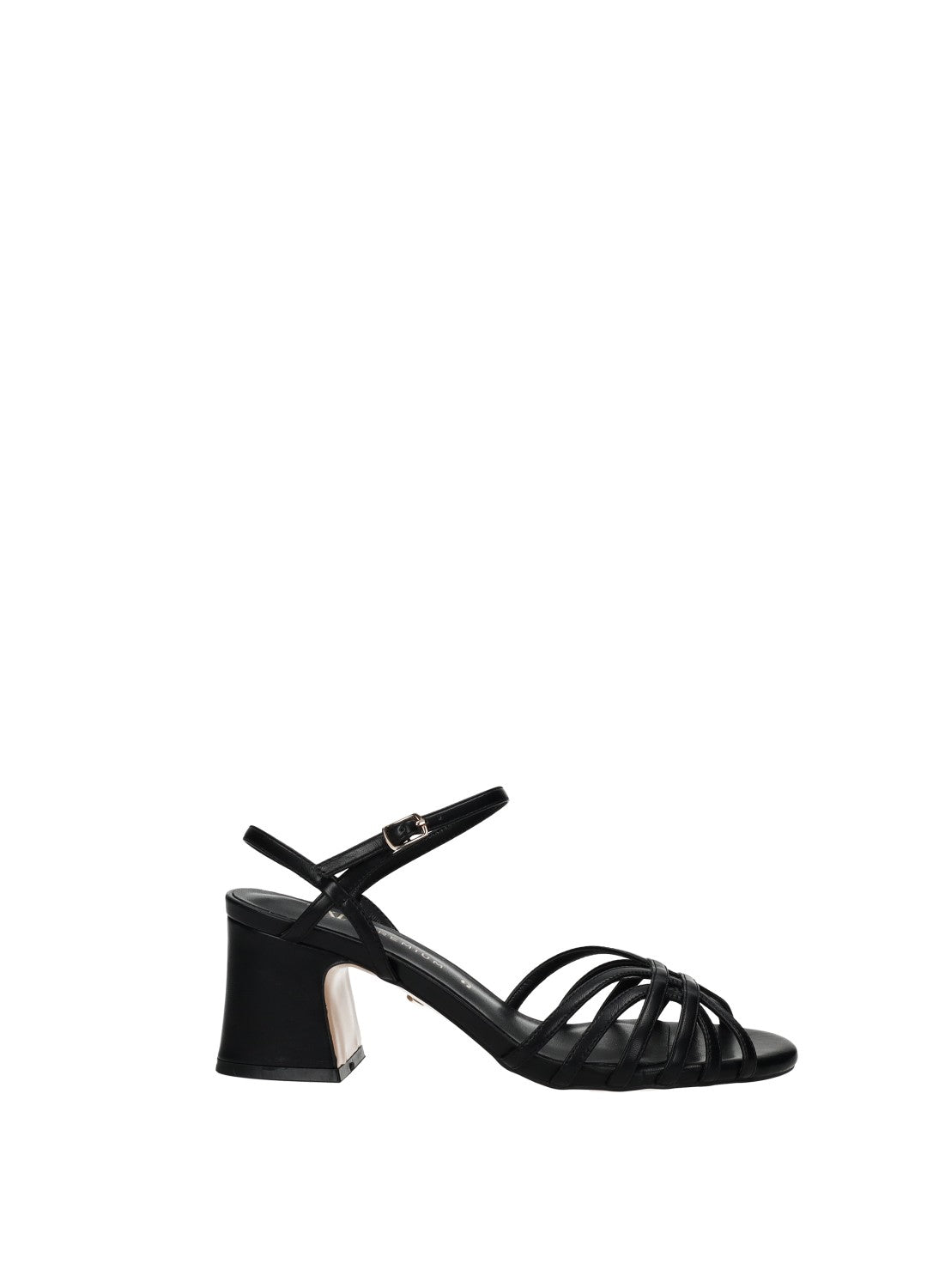 Sandali effetto pelle con listini incrociati e tacco di 6.5 cm.