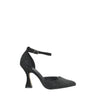 Das spitze Modell verfügt über Strassverzierungen und Spulenabsätze.