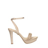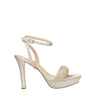 Sandalen mit Plateau und strassbesetztem Band. 11 cm hoher Absatz