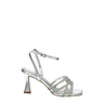 Sandalen mit funkelnden Strasssteinen. 8 cm hoher Absatz