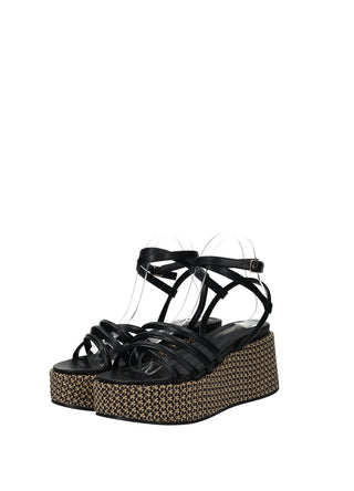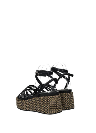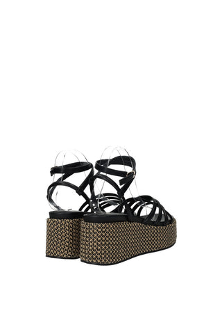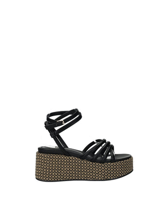 Sandali con listini incrociati e zeppa decorata di 6.5 cm.