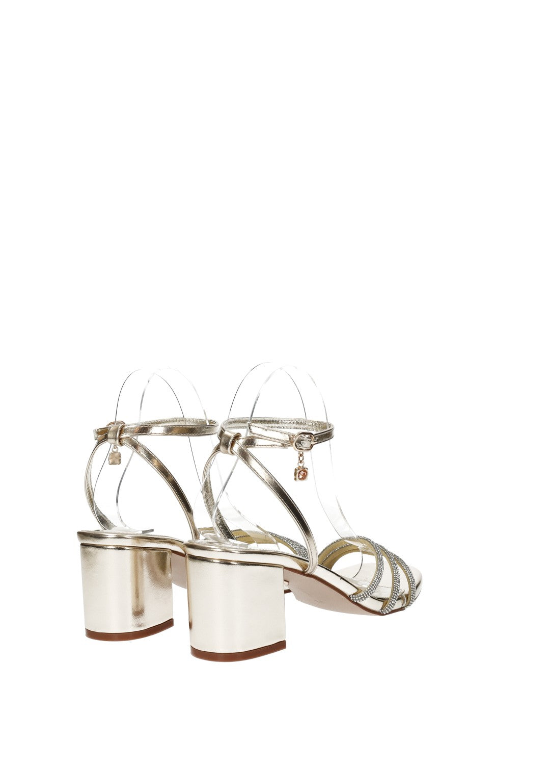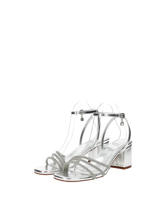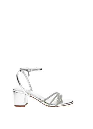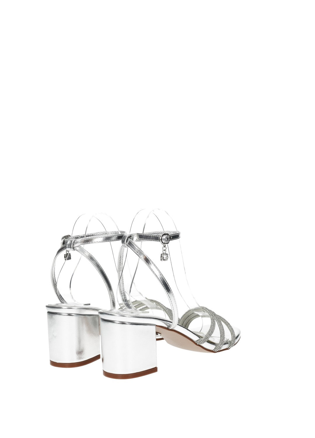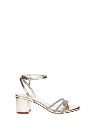 Sandali effetto pelle con tacco di 6 cm e listini strass.