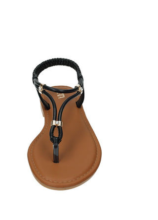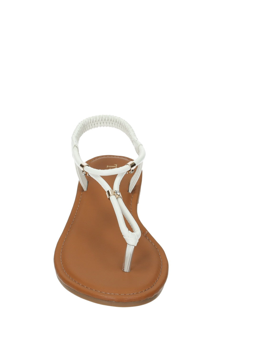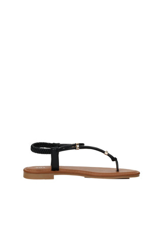 Sandali infradito effetto pelle con cinturino elasticizzato e fondo in gomma.