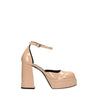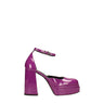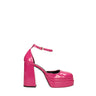 Breiter Absatz. Knöchelriemen mit Schnalle.