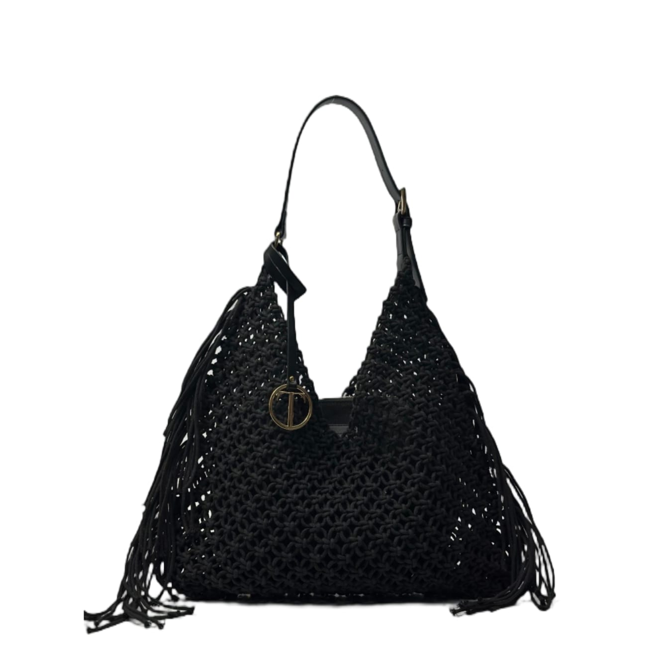 Borsa a spalla intrecciata con frange.
