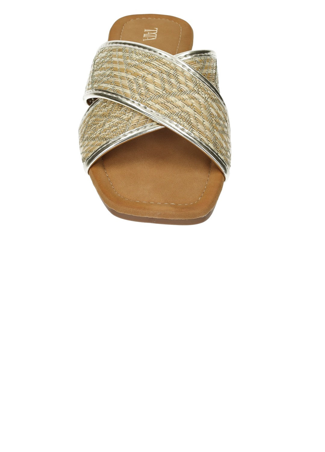 Sandali con tomaia in rafia e fondo in gomma.