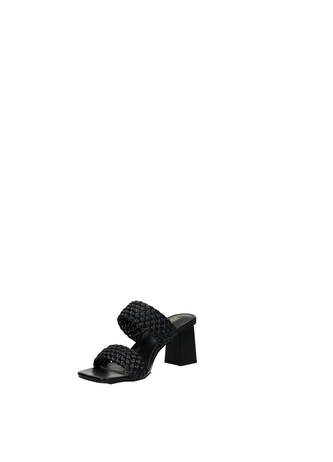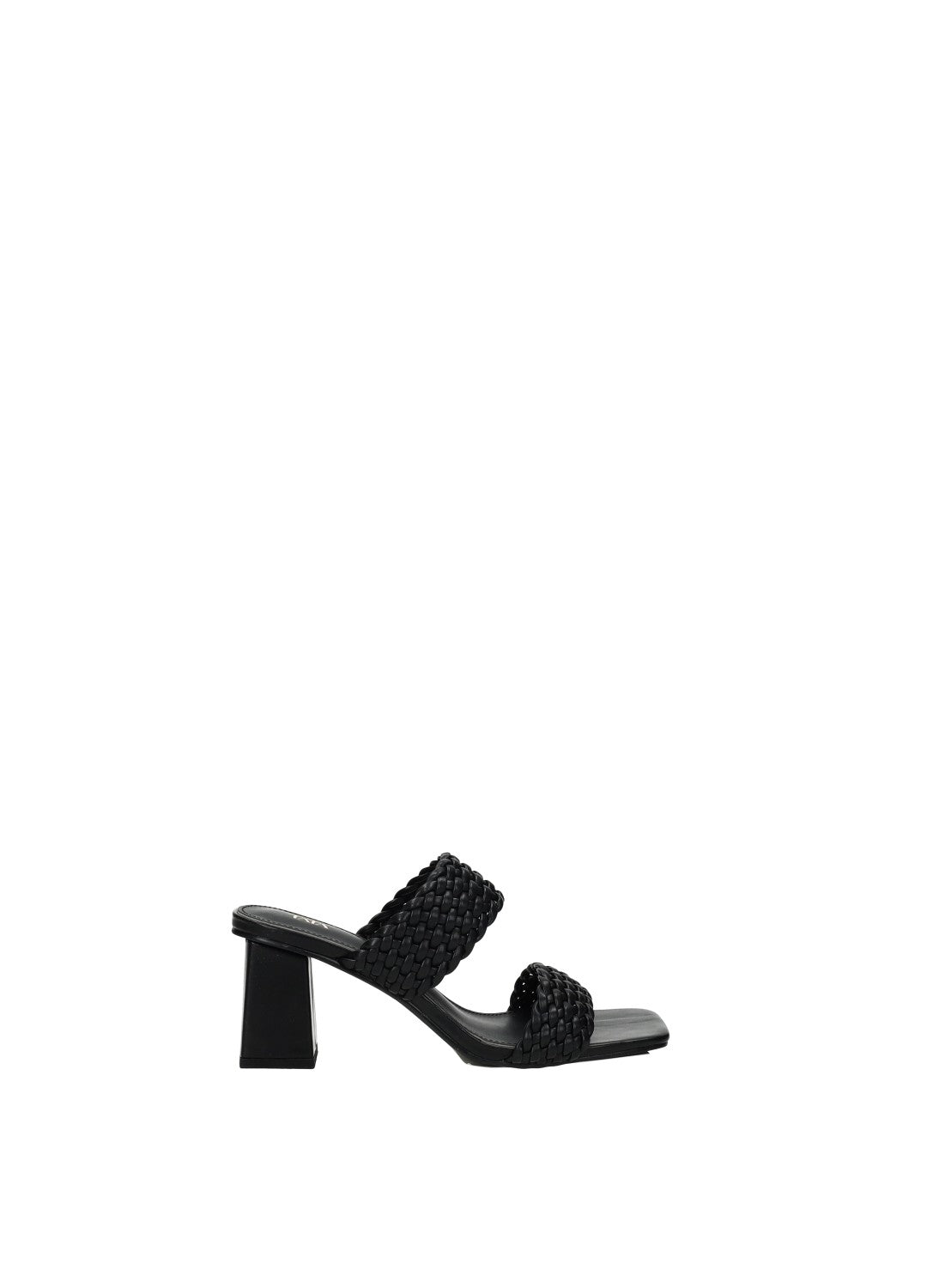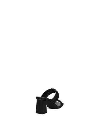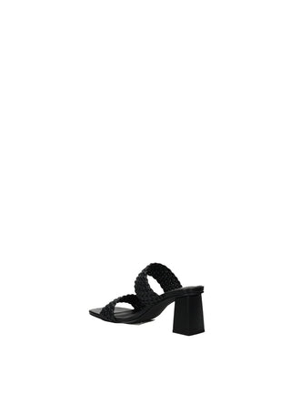 Sandali effetto pelle con tacco largo di 6.5 cm e doppia fascia intrecciata.