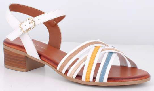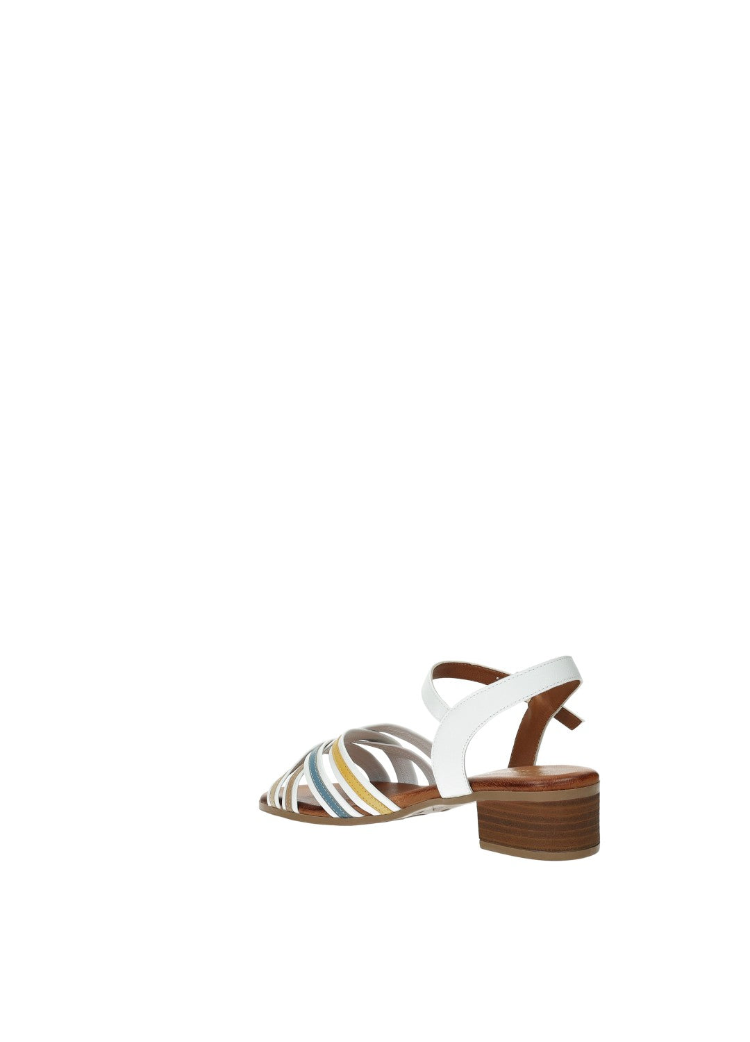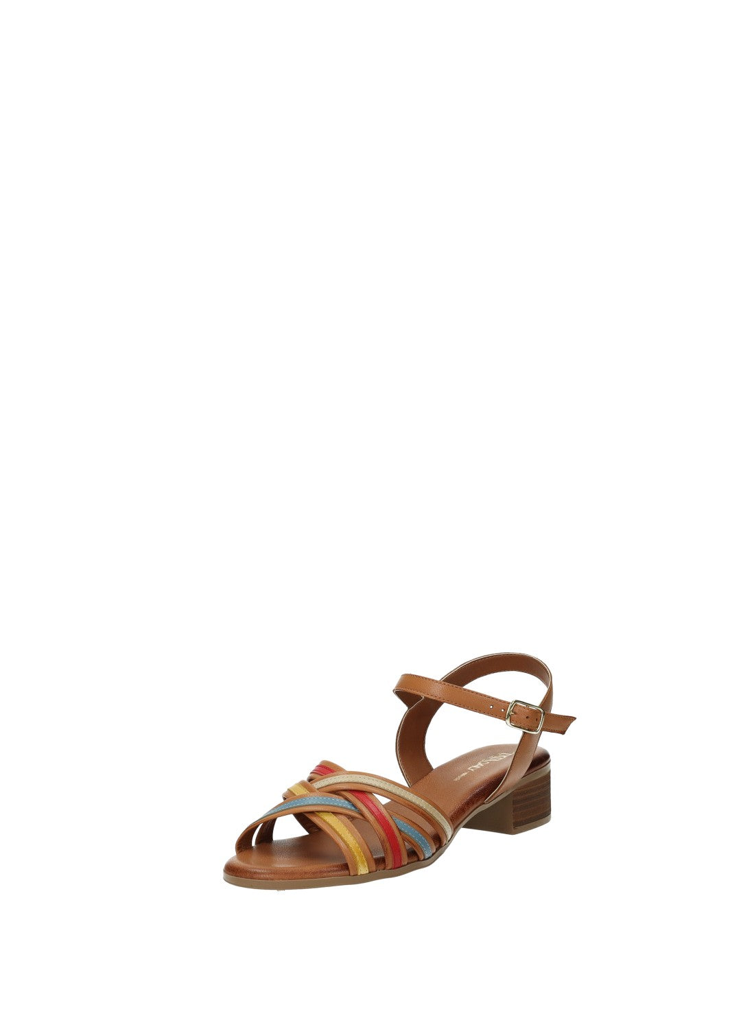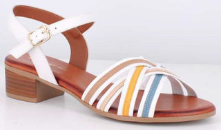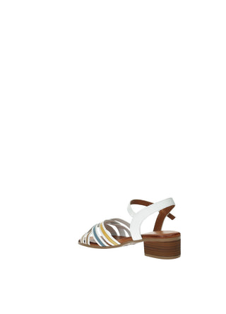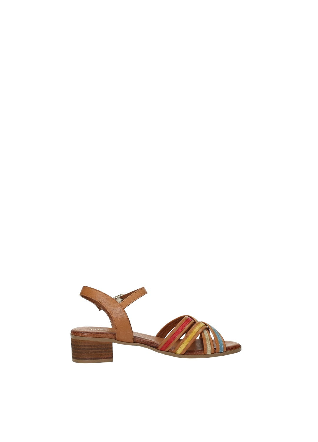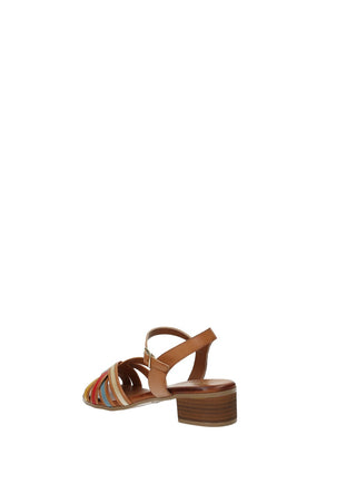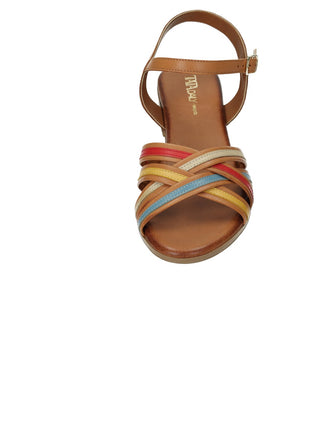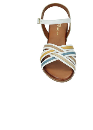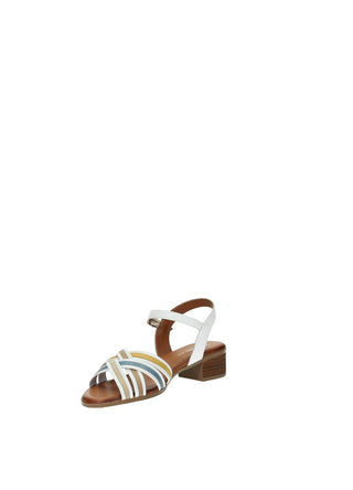 Sandali in vera pelle con tacco di 3.5 cm e fasce incrociate multicolor.