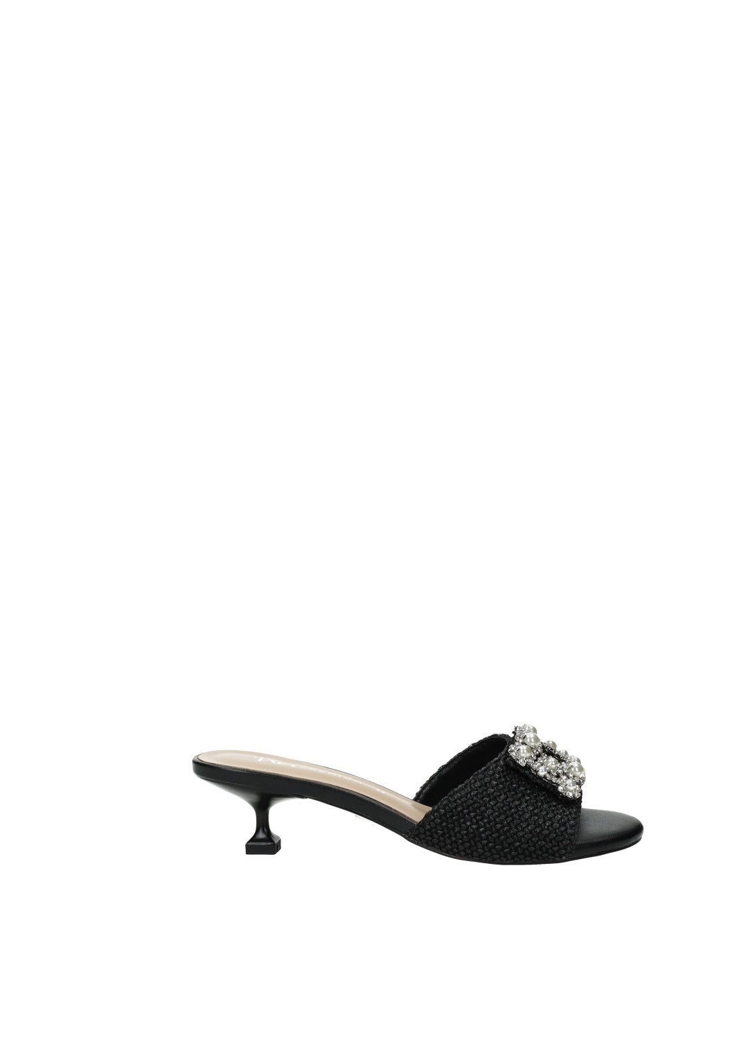 Sandali effetto pelle con tacco di 4 cm e fibbia gioiello.