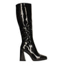 Patent leather boots with square toe. 9cm high block heel