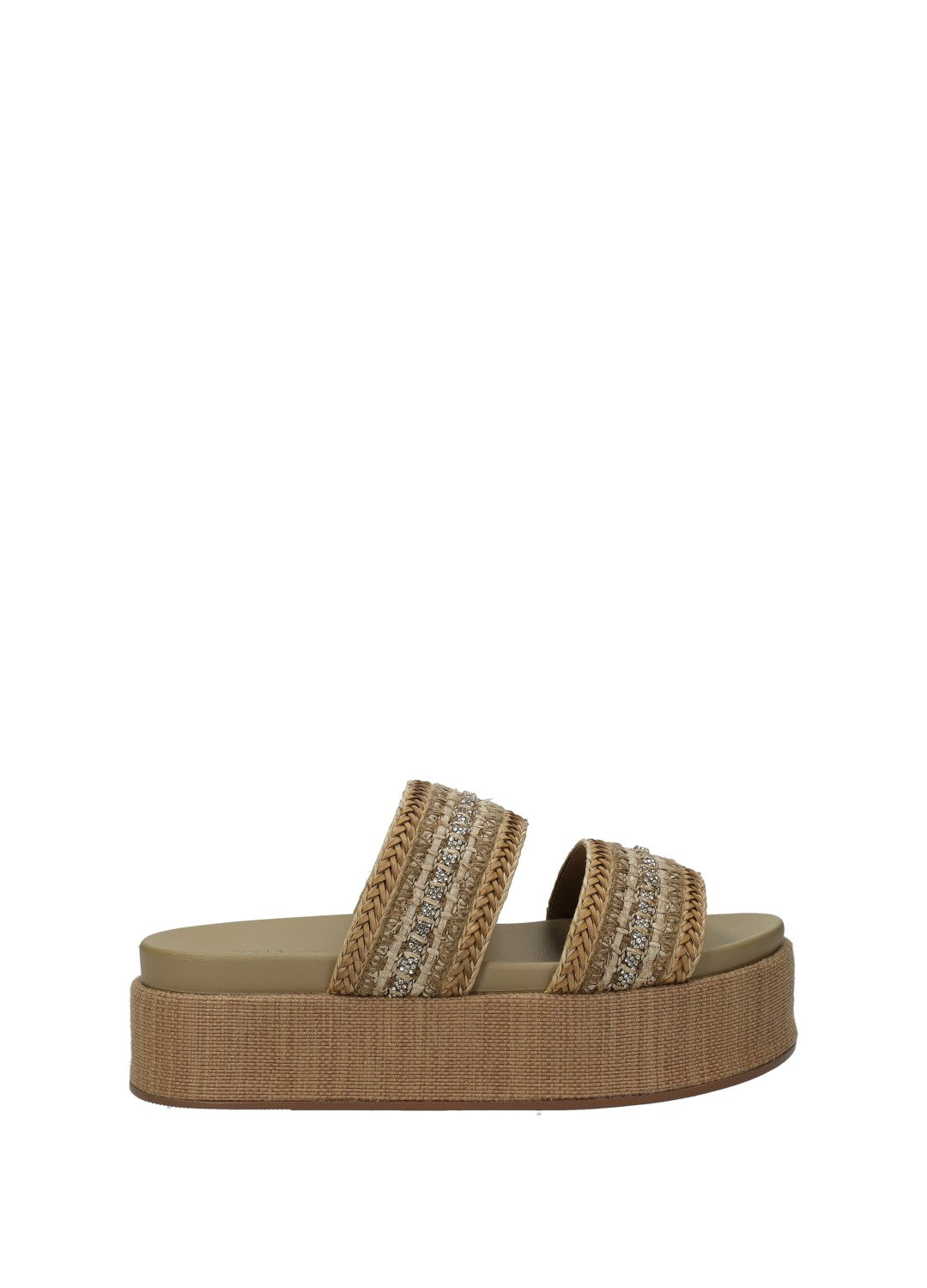Sandali in rafia con tomaia ricamata e zeppa di 3.5 cm.