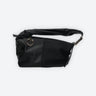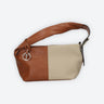 Handbag with double handle and buckle closure.