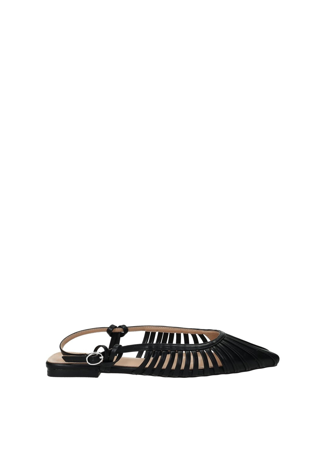 Ballerine effetto pelle con cinturino e fondo in gomma.