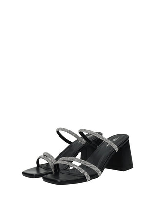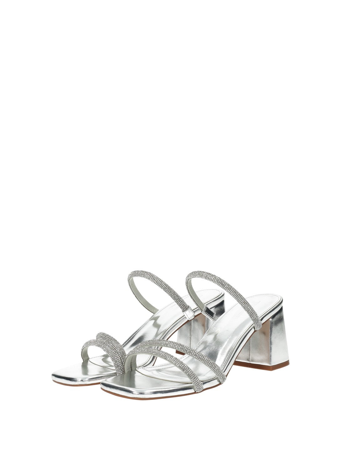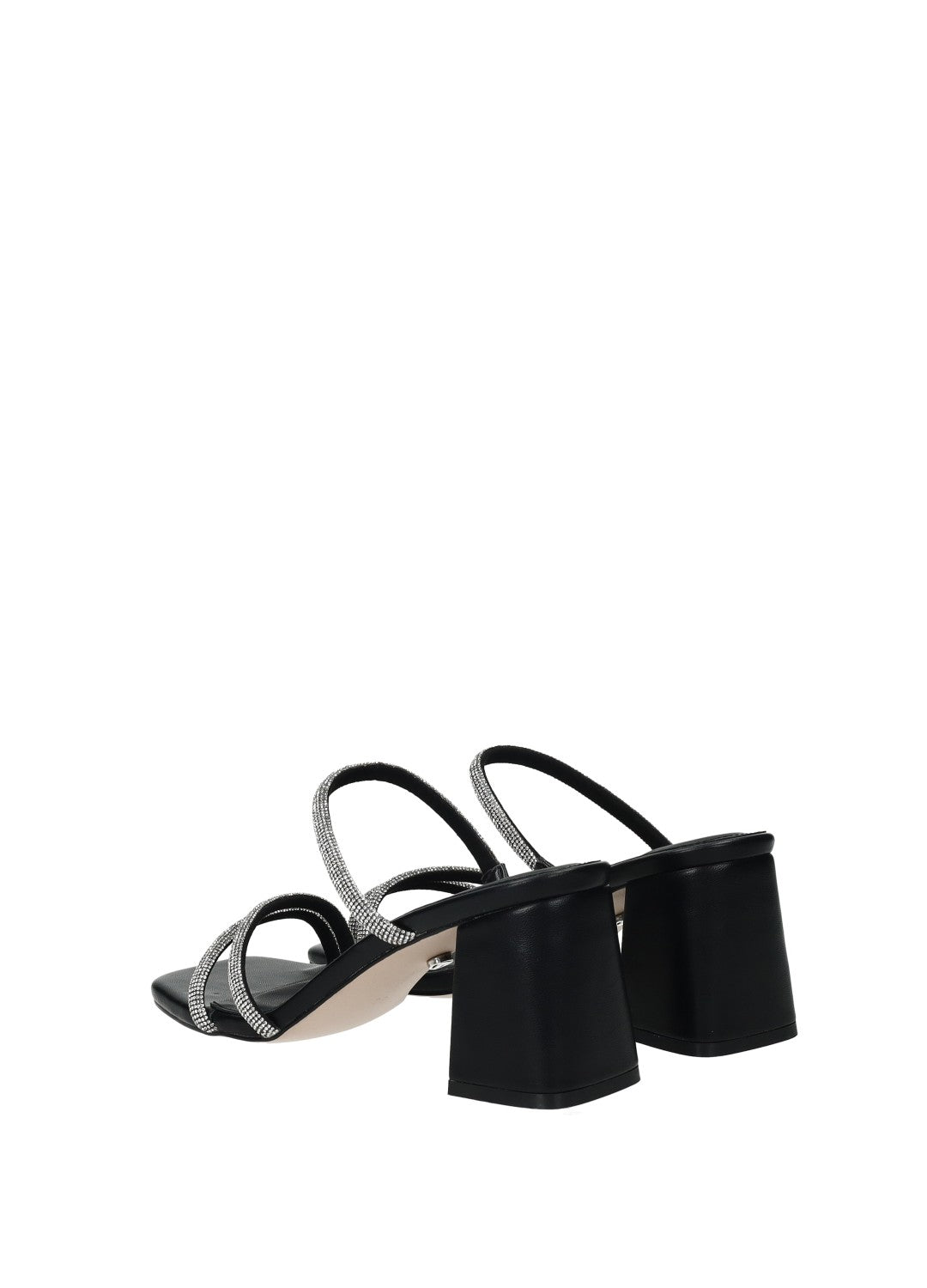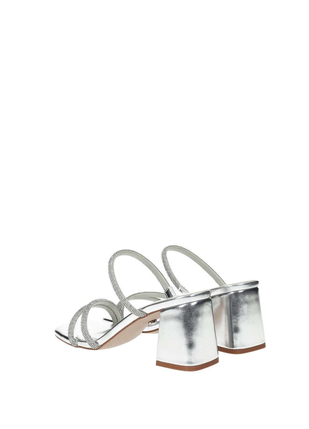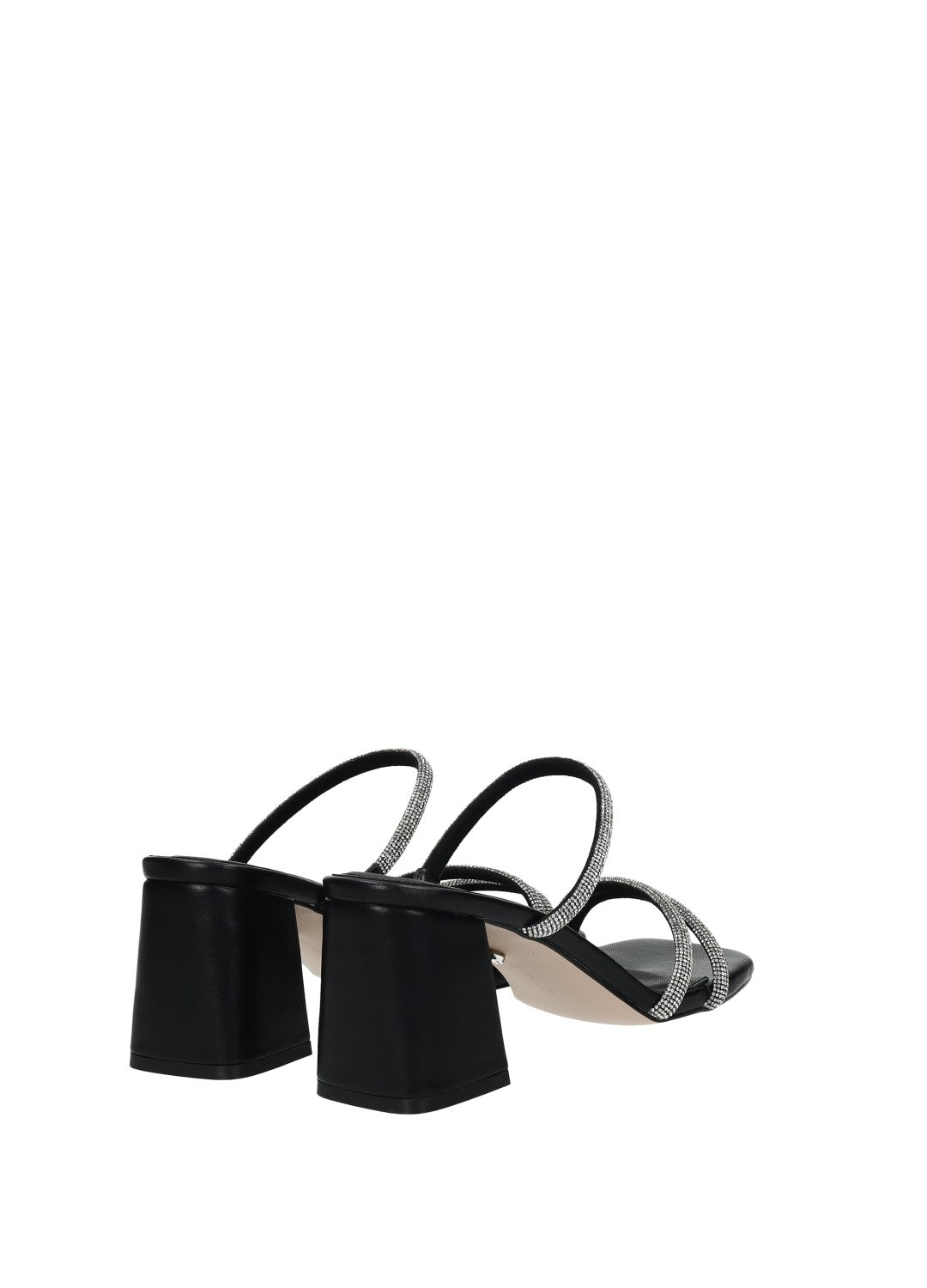 Sandali effetto pelle con tacco di 7 cm e listini strass.