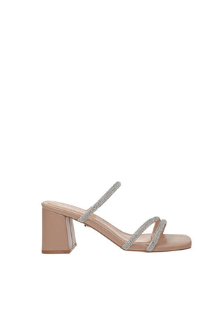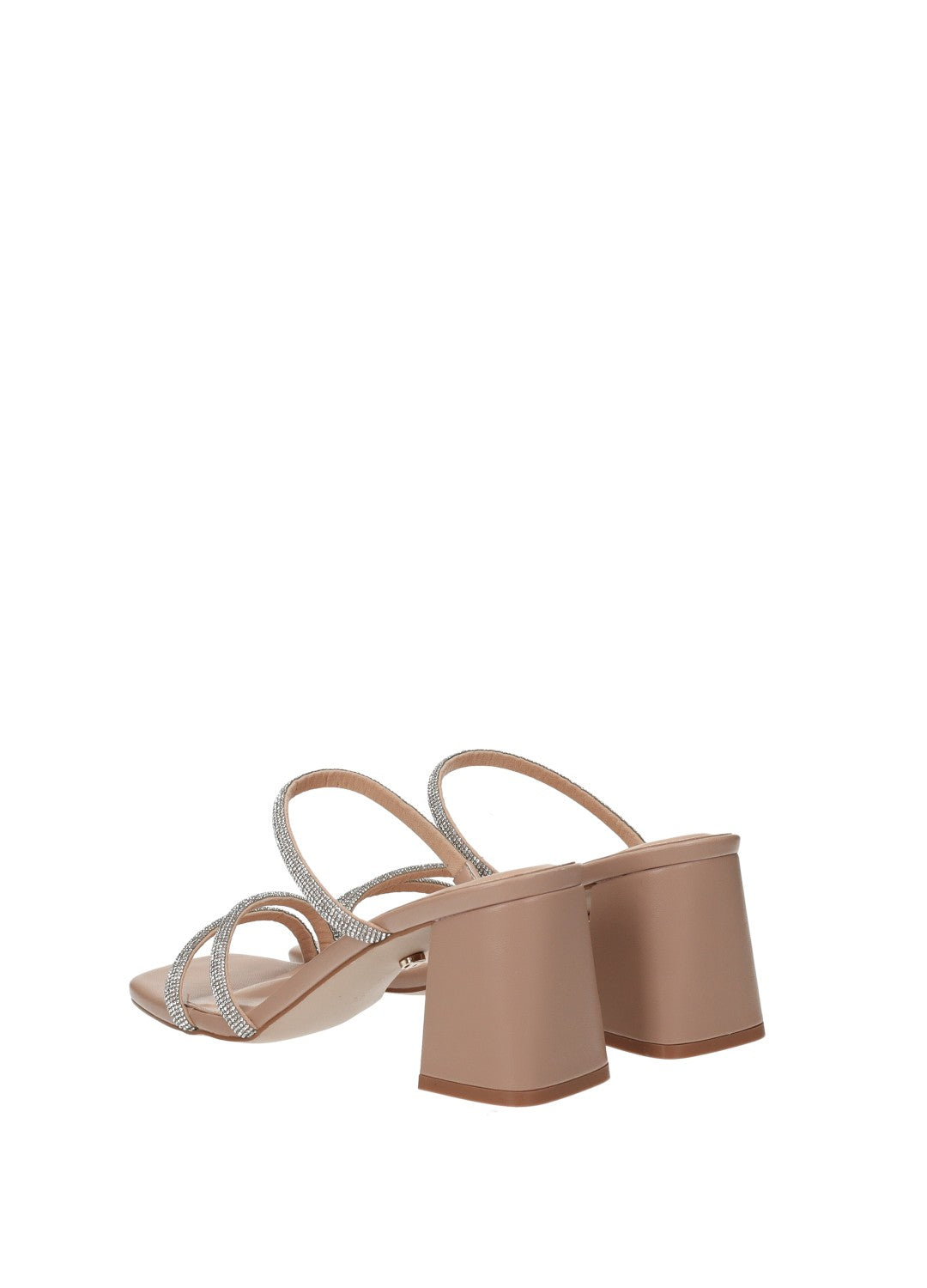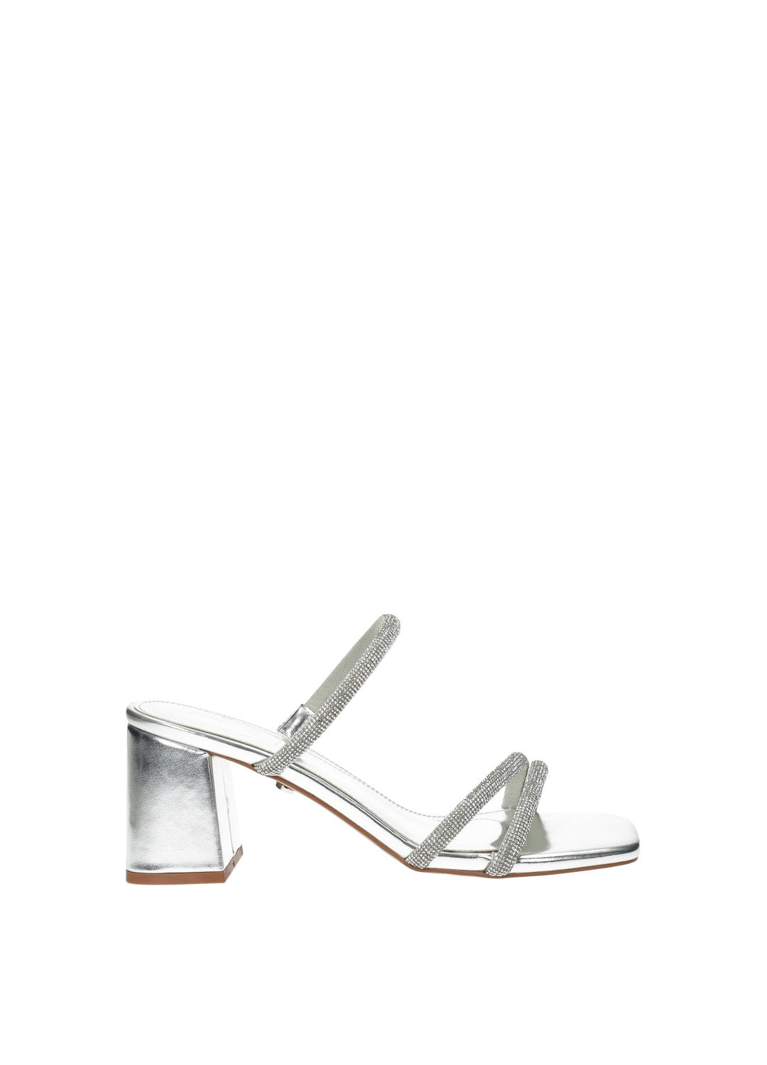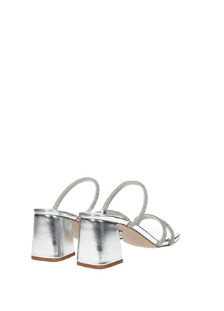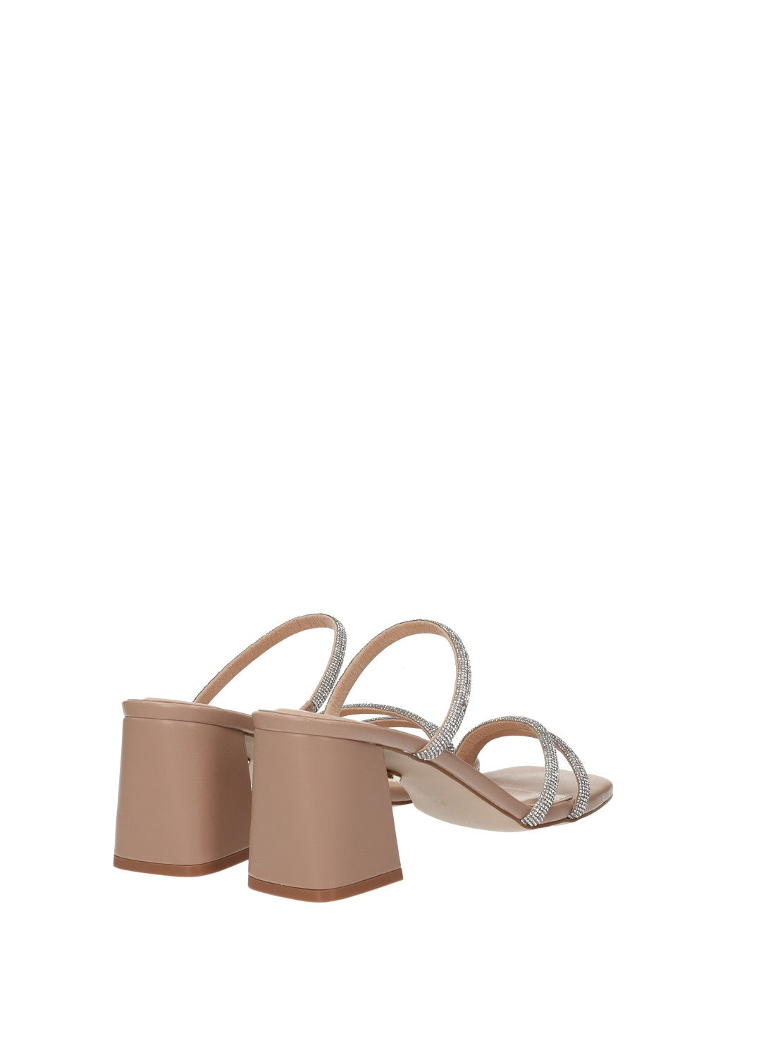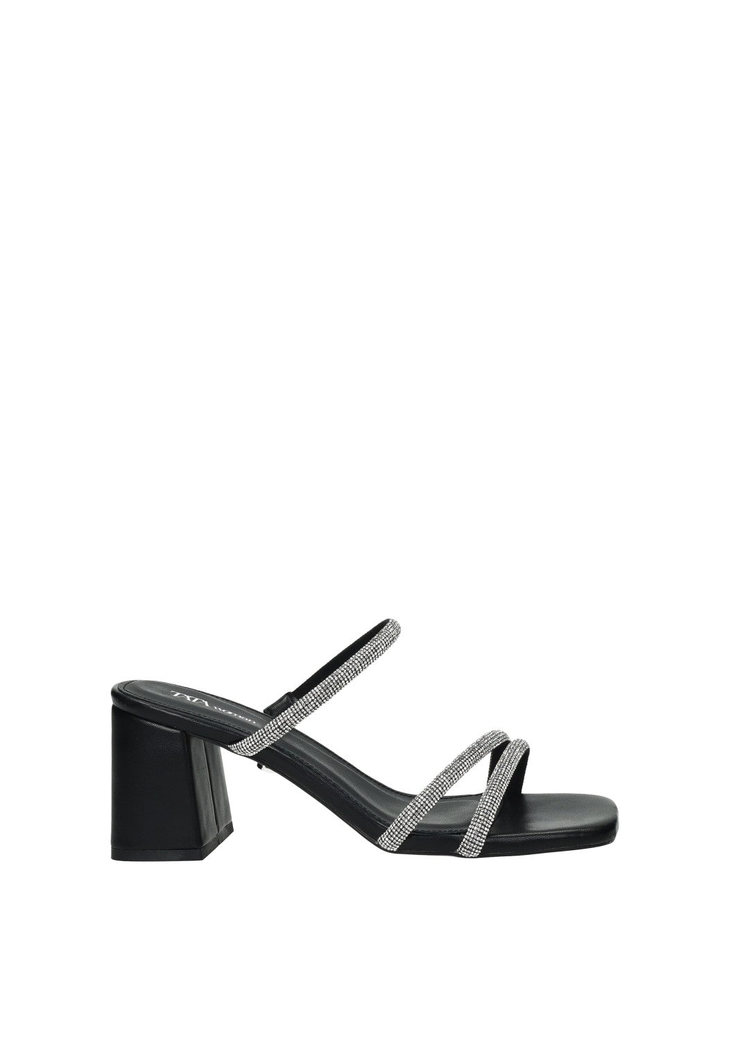 Sandali effetto pelle con tacco di 7 cm e listini strass.