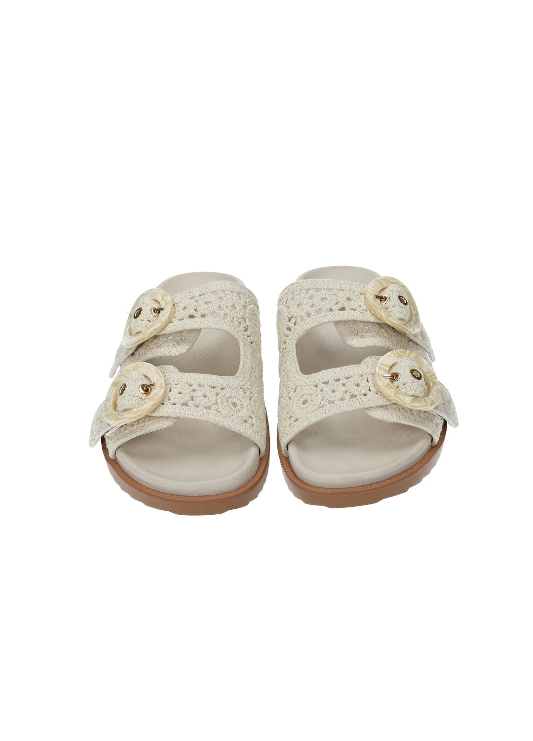 Sandali con tomaia ricamata. doppia fibbia e fondo in gomma.