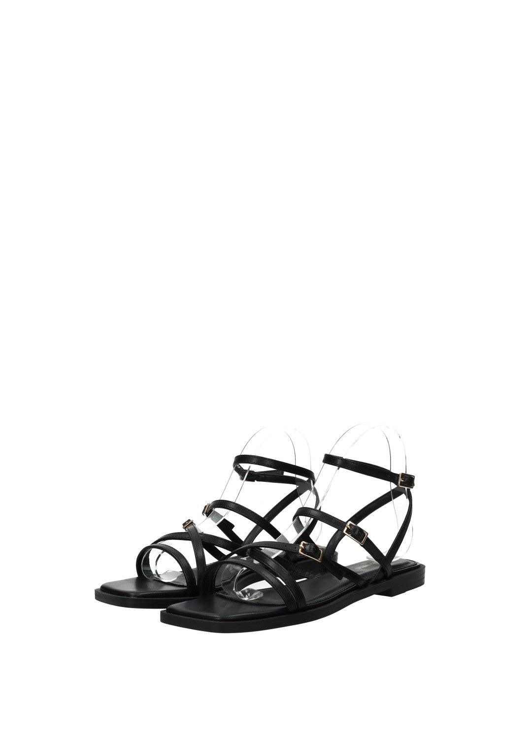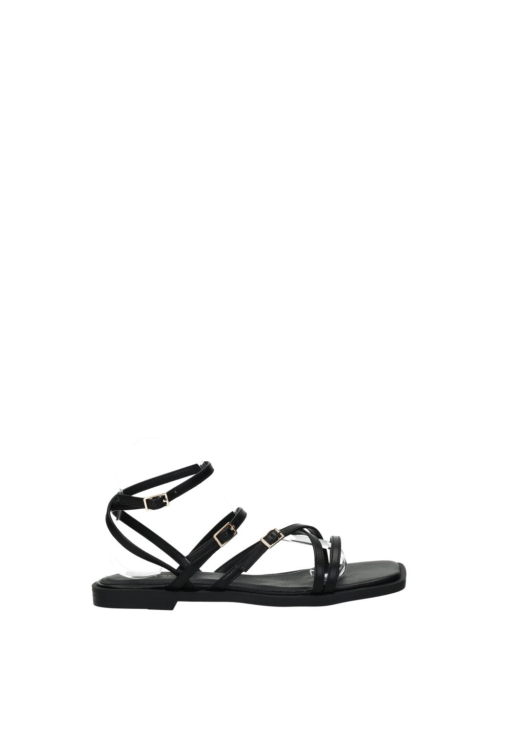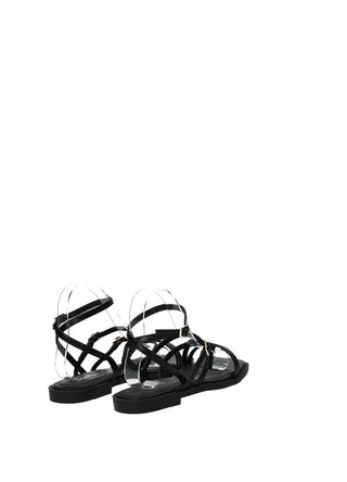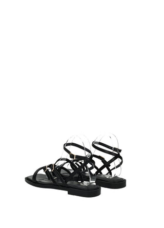 Sandali bassi effetto pelle con listini incrociati e fondo in gomma.