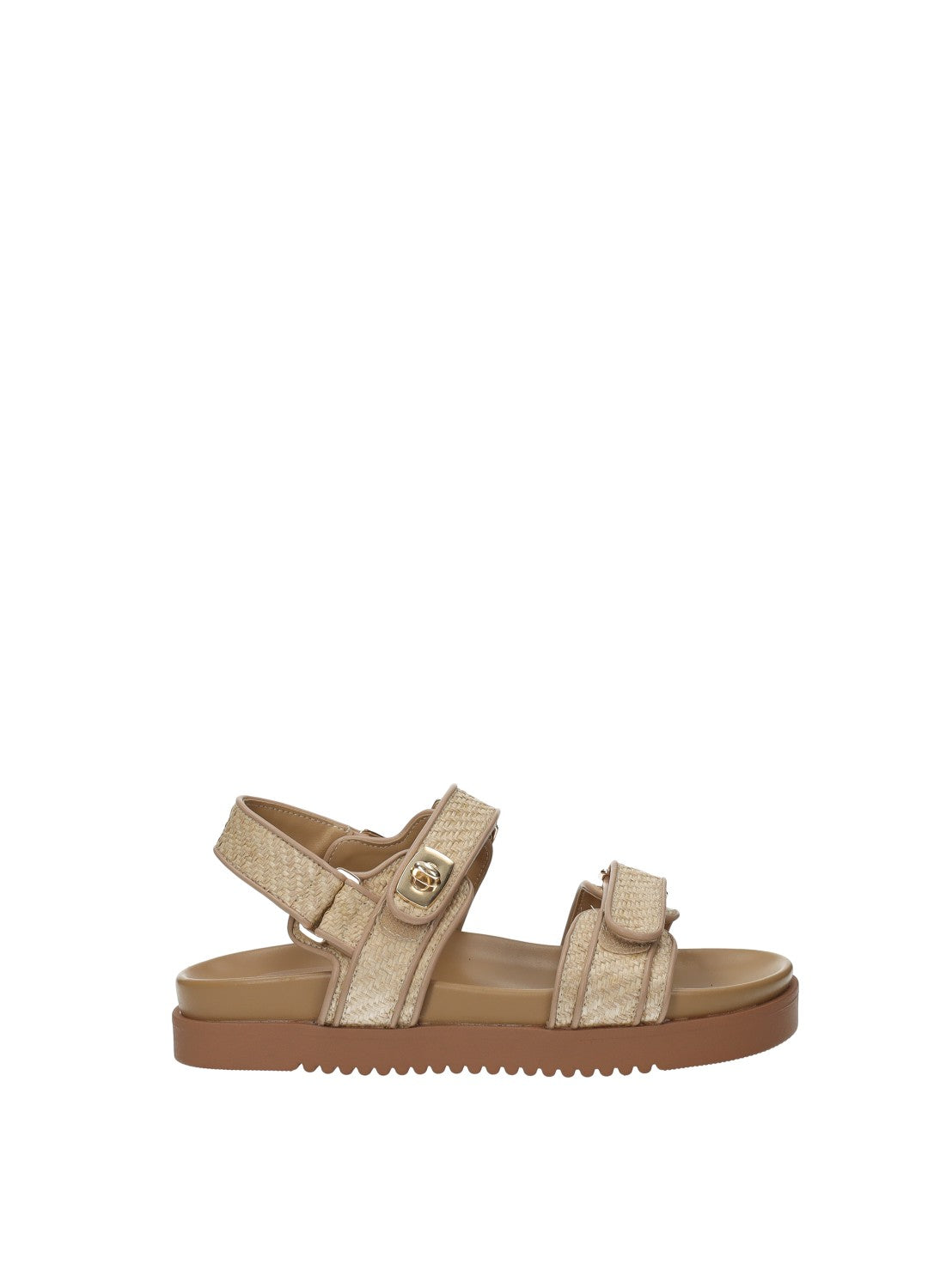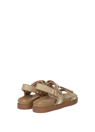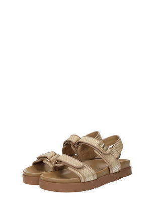 Sandali in rafia ed ecopelle con fondo in gomma.