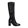 Presenta un’audace silhouette sopra il ginocchio con punte arrotondate e tacchi a blocco.
