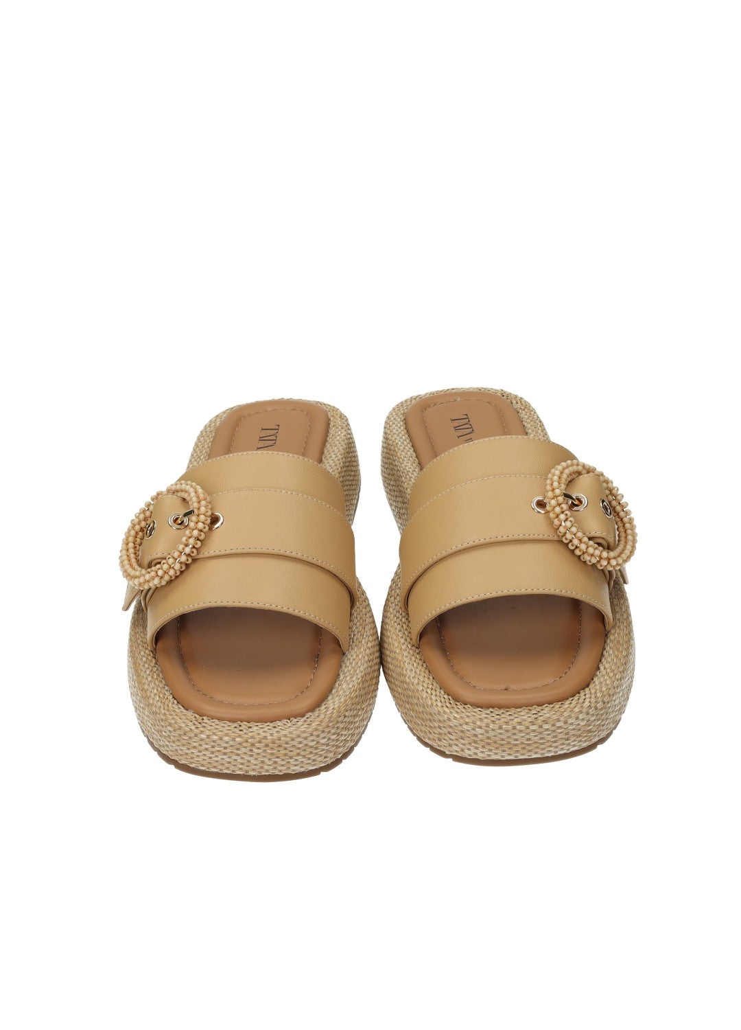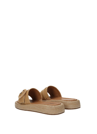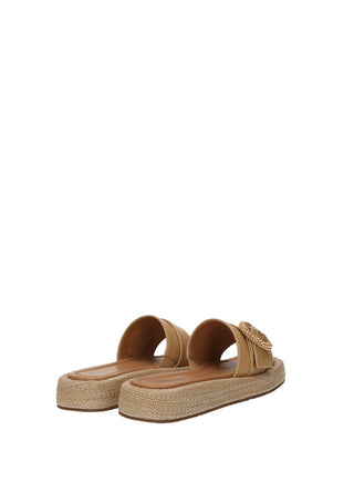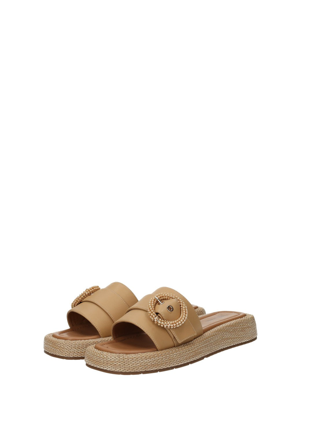 Sandali effetto pelle con zeppa bassa e dettaglio rivestito di coralli.