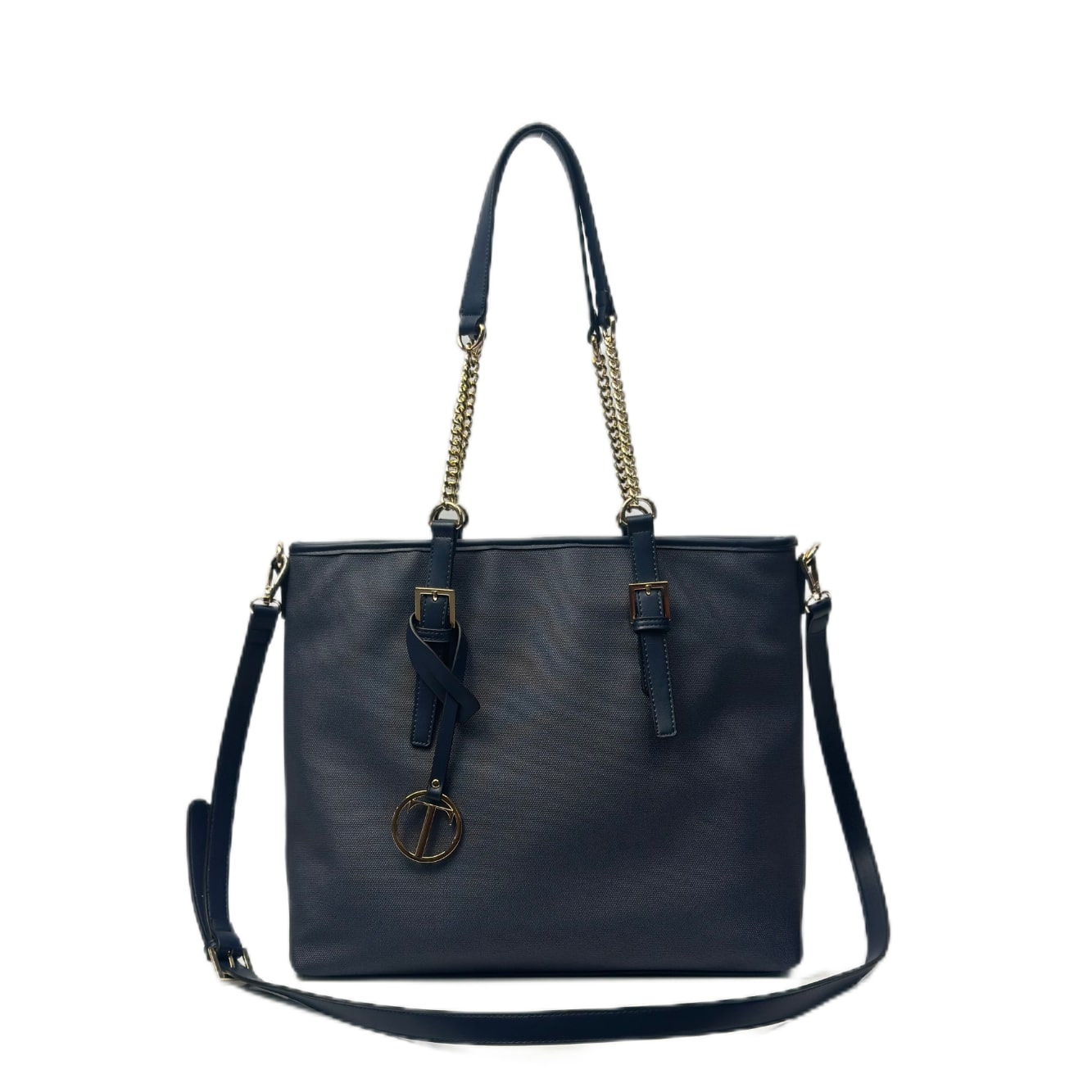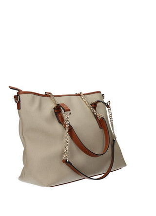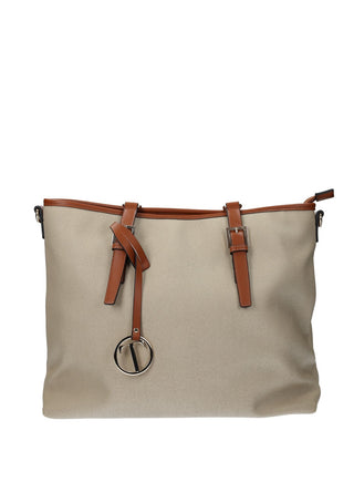 Borsa shopper in tessuto ed ecopelle.